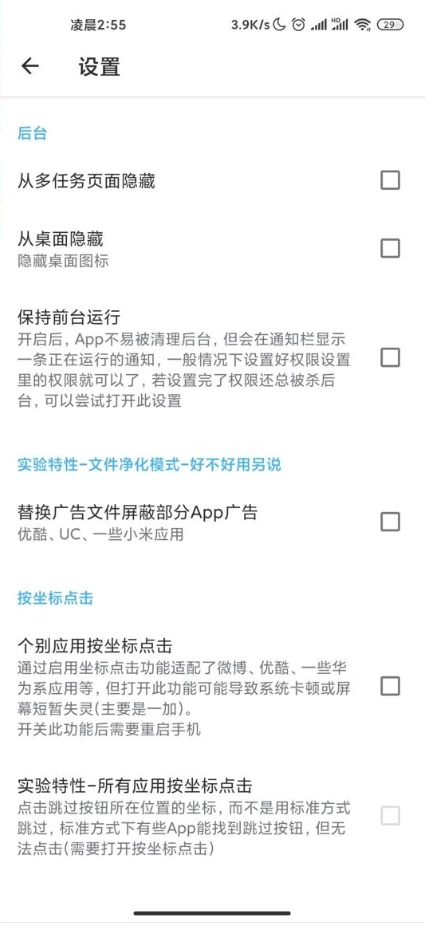 自动跳过3.3.8捐赠版是一款好用的开屏广告拦截工具,进入设置就能一键关闭开屏广告,操作特别简单,设置完成后就不会再有烦人的广告打扰啦,很多用户都在使用,有需要的朋友赶紧试试吧!