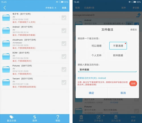 通过文件管理工具,你能够自行对指定的文件或文件夹进行排除操作,仅需长按对应的文件就能完成相关配置。