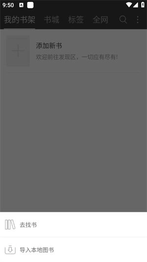 若书架上还没有任何电子书,你可以尝试添加新书的方法来获得电子书资源。