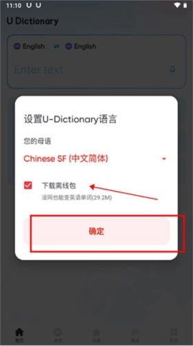 打开U-Dictionary软件,进入后就能直接获取一个离线包。