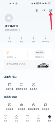 点击汽车,可以绑定爱车或线上预约试驾