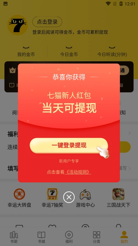 在福利页面里,列有我们各类获取金币的任务与途径,需要注意的是,新手福利仅限完成一次。
