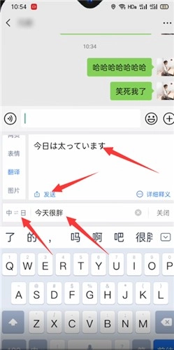 先找到界面左上角的语言选择区域,设置源语言为中文、目标语言为日语,完成设置后点击确认按钮。之后在下方的输入框中填写需要翻译的内容,再点击日语选项,内容就会自动填入对应的输入框中。