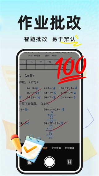 可批改数学、语文、英语等学科的作业,能自动标注错误之处,同时给出正确答案与详细解析。