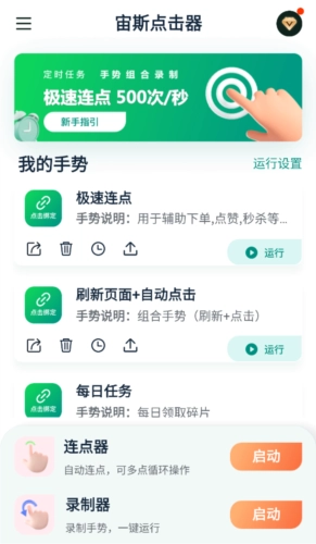 宙斯点击器是一款十分实用的连点工具,不存在各类操作限制,其强大的功能涵盖了不同的板块内容,作为一款能够实现屏幕自动点击的手机应用,它可助力游戏操作、定时抢购商品、视频点赞互动等多种场景,感兴趣的朋友们不妨前来体验一番。