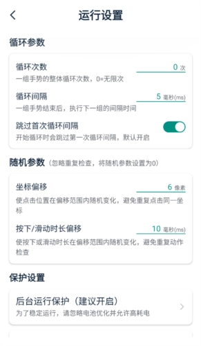 配置支持设置循环参数与随机参数,循环次数会按照设定的间隔重复执行操作;而随机参数的设置则能有效避免重复点击同一位置。