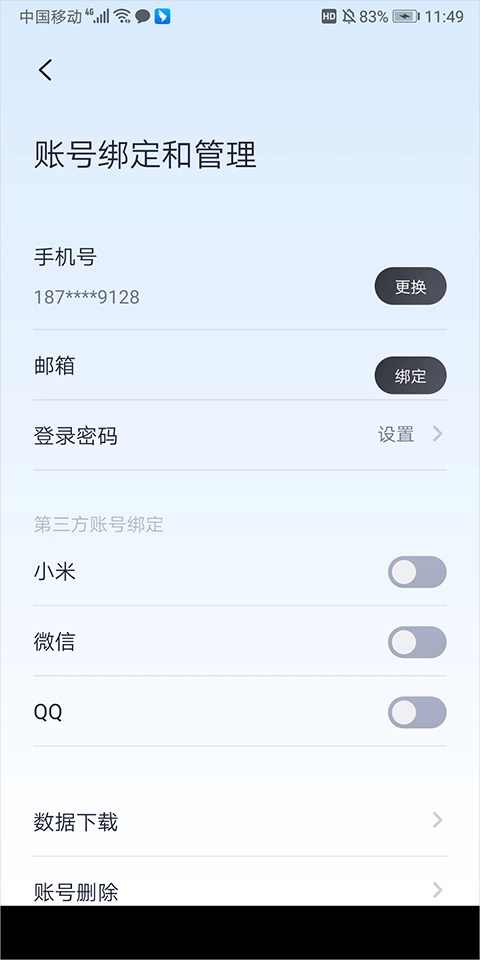 在打开的设置页面中点击【账号绑定和管理】