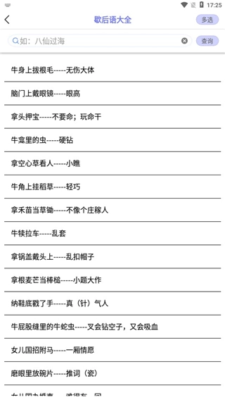 还有各种歇后语大全,用户可以随时进行搜索查看。