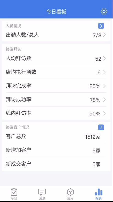 点击报表,即可直接查看人员情况、终端拜访数量等信息,支持自由浏览。