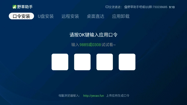 连接完成后,输入对应的口令,就能借助手机远程给电视安装各类TV应用,操作起来十分便捷。