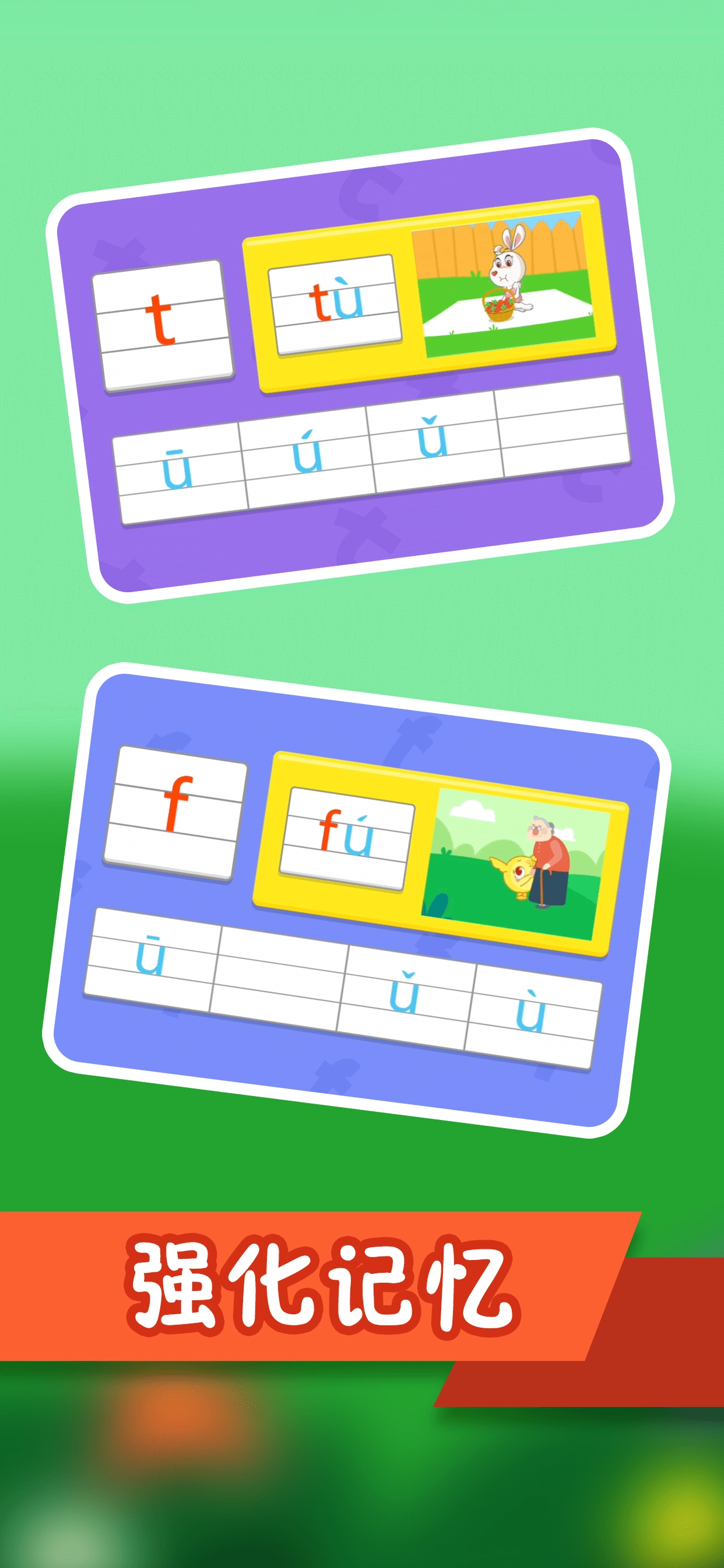 所有音节均采用字母拟人化设计,强化记忆深度。