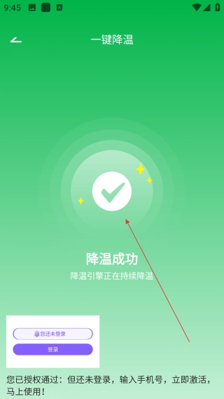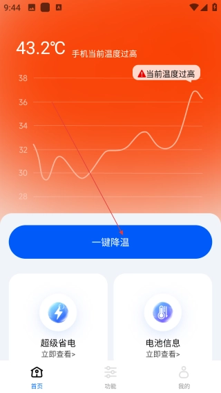 打开手机降温散热器,点击【一键降温】。