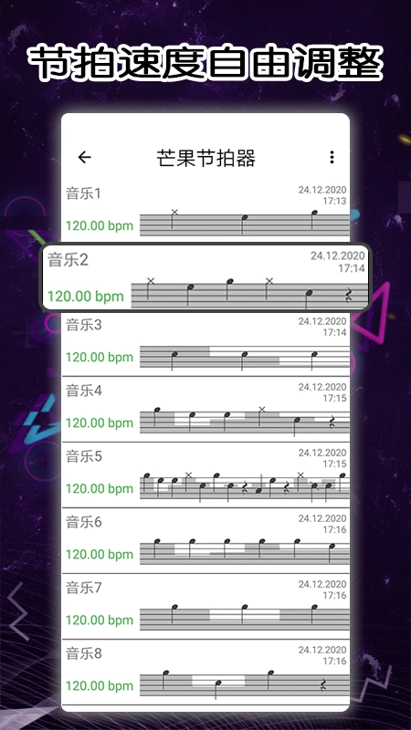 芒果节拍器是一款专为音乐爱好者打造的音律节奏学习应用,能帮助用户轻松掌握专业音乐旋律。它多种音效与歌曲节奏,支持实时调音功能,让你可以随时在线练习,学习更多乐器弹奏技巧。无论是音乐初学者还是专业人士,这款应用都是不可或缺的调音工具,既能满足日常的乐器节拍练习需求,也可作为高阶音乐训练软件使用。