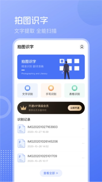 智能文字识别:具备强大的OCR识别能力,能够精准提取各类文件中的文字内容,不仅支持将识别结果导出为TXT文本格式,还可实现即时翻译功能。