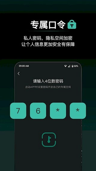伪装图标开启后,需输入正确口令方可进入主界面,此功能为隐藏空间额外增添了一道安全防护屏障,这便是口令验证防护机制。