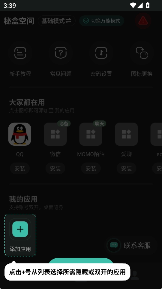 敏感应用管理:把涉及个人隐私的应用添加到隐藏空间,借助伪装和口令的双重保护来降低泄露风险。