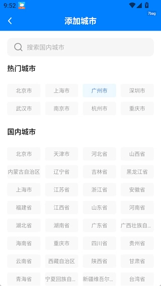 城市批量管理:借助“添加城市”功能记录常用城市,在主界面左右滑动就能切换,方便查看多个地区的天气情况。