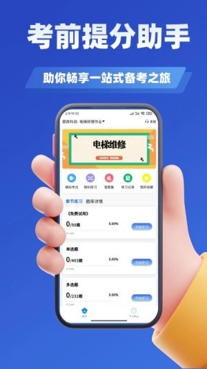 产品定位:作为专业电梯操作员考试的备考辅助工具,依托智能学习系统和海量题库资源,助力考生提升备考效率。