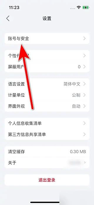 在设置列表中选择账号与安全条目。