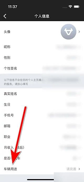 找到车辆用途设置选项。