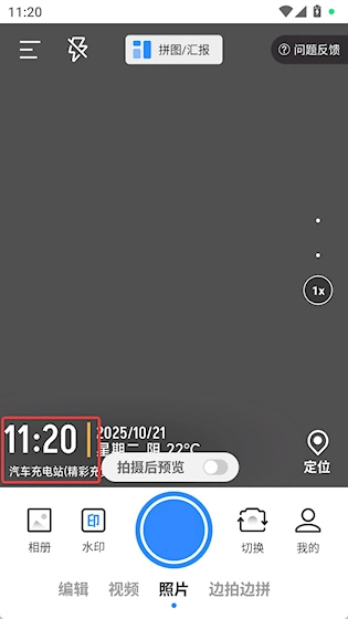 拍照拼图整合功能:拍摄完成后,能够直接使用拼图模板,把多张带有水印的照片进行组合,这样更方便对现场信息进行整理和展示。