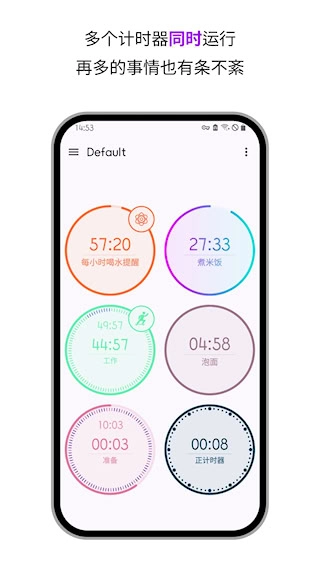 计时器倒计时具备多计时器并行运行功能,能够同时开启多个独立计时器来管理复合型任务。每个计时器都支持自定义标签颜色和提示音,适合烹饪、实验等需要同步监控的多线程场景,各计时进度会实时展示。
