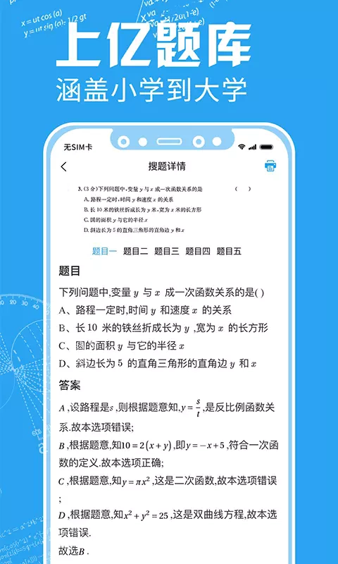 搜题解析功能:支持题目搜索与解答服务,帮助用户快速获取答案解析,从而提升学习效率。