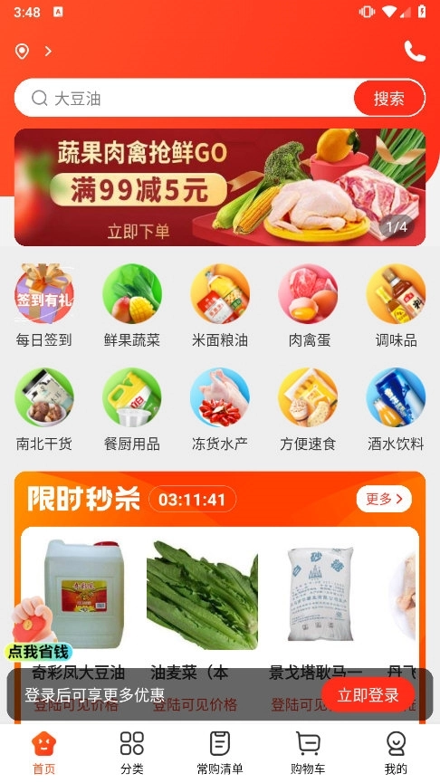 3、商品丰富,新鲜保障:我们供应品类多样的新鲜食材,涵盖蔬菜水果、肉类海鲜等,所有食材均经过严格质检,保障安全新鲜。