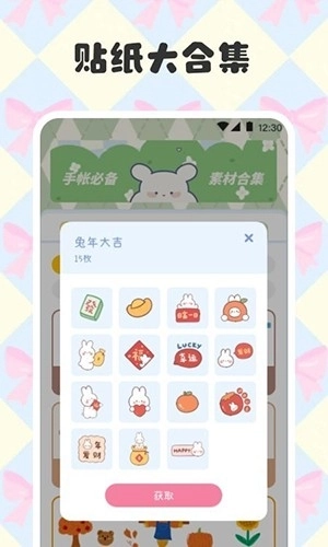 2、丰富素材:提供各种素材,包括贴纸、背景、字体、胶带和笔触等,让用户能够自由装饰手帐页面,创造出个性化的效果。素材库会经常更新,确保用户能够不断发现新元素,以丰富手帐的内容。