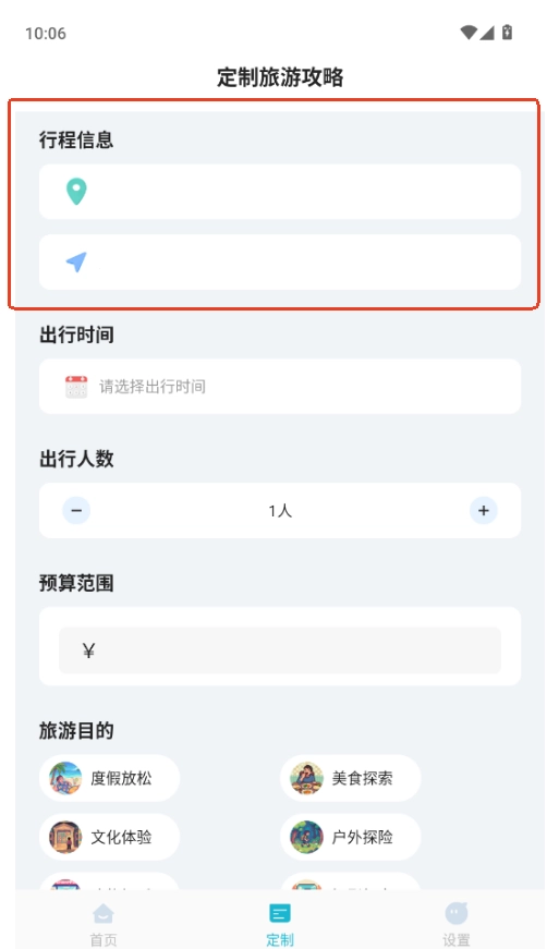 进入【定制】页面,就能按照自己的需求灵活规划行程,创建独属于自己的旅游方案。