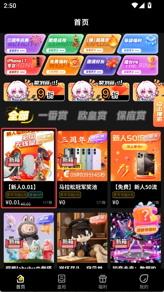 打开后,在首页的第一个就是【新人0.01】
