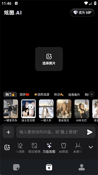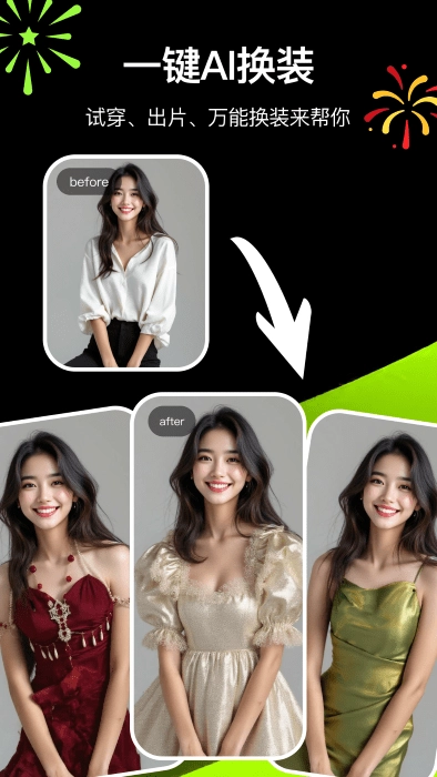 AI 换装功能:你可以自定义上传服装相关的素材,通过一键操作就能完成换装,这样就能轻松体验各种不同的穿搭风格了。