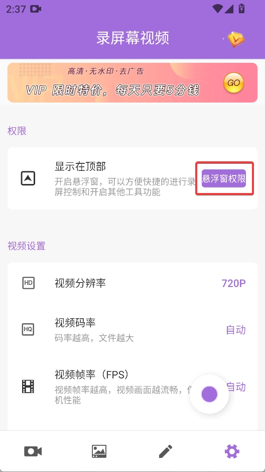 点击悬浮窗权限,前往开启