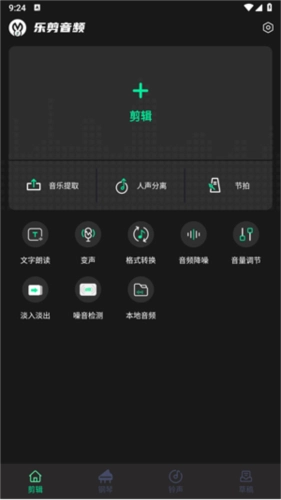 1、打开乐剪音频应用,进入剪辑专区后,既能直接对视频进行剪辑操作,也可以使用专区内提供的其他各类小工具。