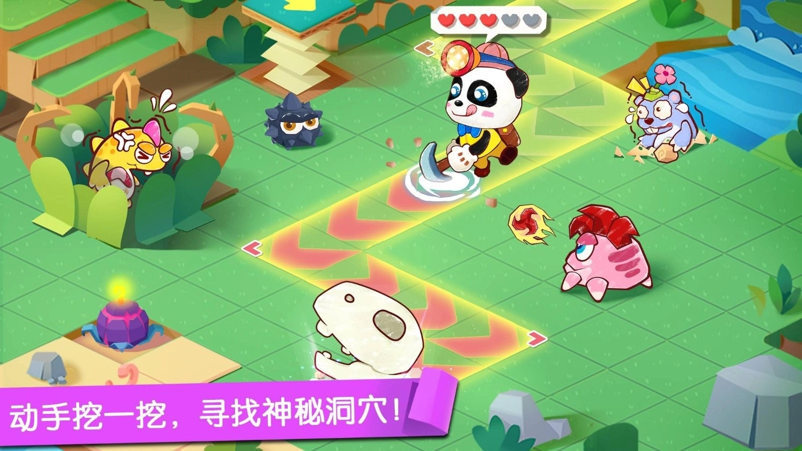 完成一段剧情后,就能在地图上挑选关卡了。用鼠标点击地图上的方块,奇奇就会去探索挖掘,寻找下一个关卡。