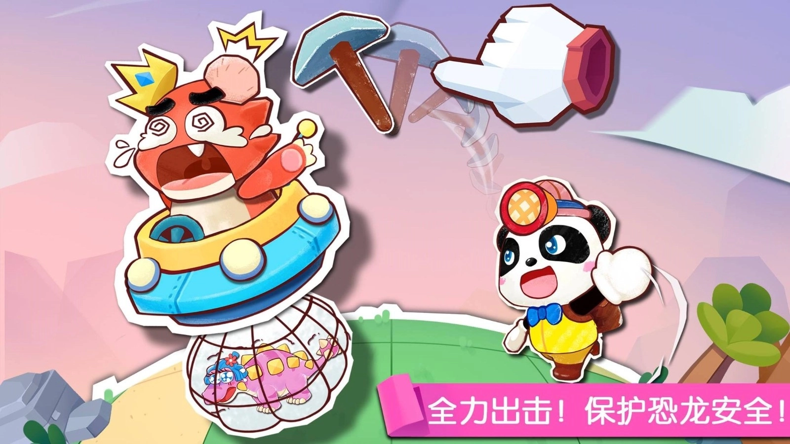 奇妙恐龙世界是宝宝巴士精心打造的恐龙探险游戏!注意啦!一大波恐龙正悄悄靠近!快跟着奇奇变身小小考古学家,亲手挖掘神秘洞穴,寻找珍贵的恐龙化石,拼搭完整的恐龙骨架,还能让沉睡的恐龙复活,一起赶跑大魔王,守护属于你的恐龙世界!游戏里有超多有趣的场景互动,让宝宝在探索中收获满满乐趣,激发对恐龙的求知欲,满足好奇心——挖掘恐龙、照顾恐龙,和各种恐龙来次亲密接触,还能了解它们的生活习性哦!霸王龙、翼龙、三角龙……小朋友,是不是已经迫不及待想加入这个奇妙的恐龙乐园了呢!