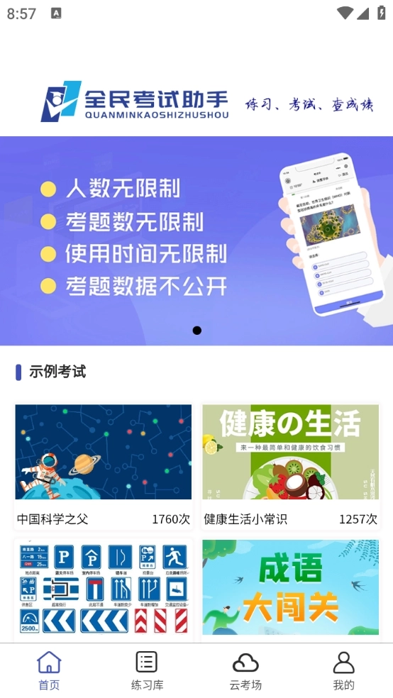 4.无限制使用:在使用人数、考题数量以及使用时长方面均不设限制,能够满足不同规模的学习需求。