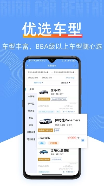 【车型多样】涵盖百款主流车型,从中高端、豪华车到商务车、SUV,再到新能源车与炫酷超跑,品类齐全;能适配短租自驾、长租、企业用车、商务出行、自驾旅游、限行代步等各类用车场景!咘咘提供24小时全时段服务,支持随时预订、即时取车。