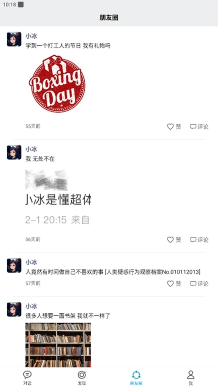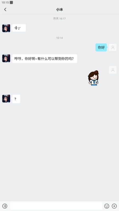 1、打开软件后进入“对话”页面,可与小冰或其他克隆智能进行聊天互动;