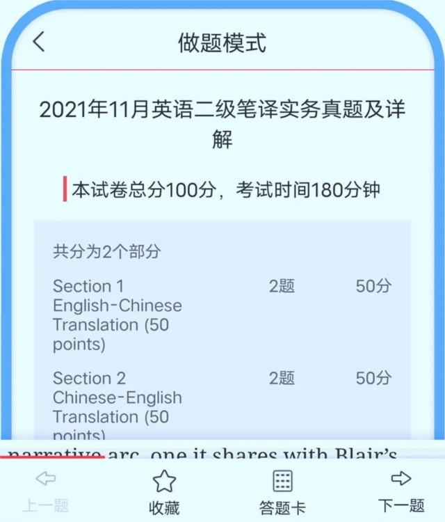 机考仿真:精准复刻考试界面与操作流程,可进行笔译综合能力及实务的全真模拟。