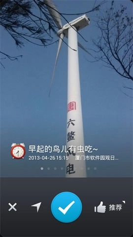3、笔者随机挑选了一款水印来给大家做演示:用户若想修改某部分文字,只需轻点对应位置就能进入编辑界面。我对下图水印的文字、心情和地理位置信息进行了编辑调整,大家可以参考看看。