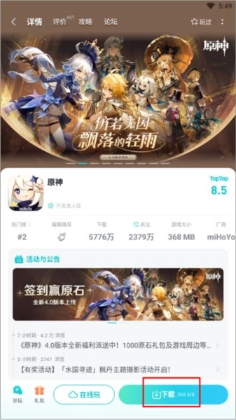 4、游戏便捷获取与更新:整合了游戏介绍、评分点评及论坛讨论的专属游戏页面,支持一键启动或更新游戏