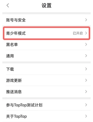 3、进入设置后找到青少年模式。