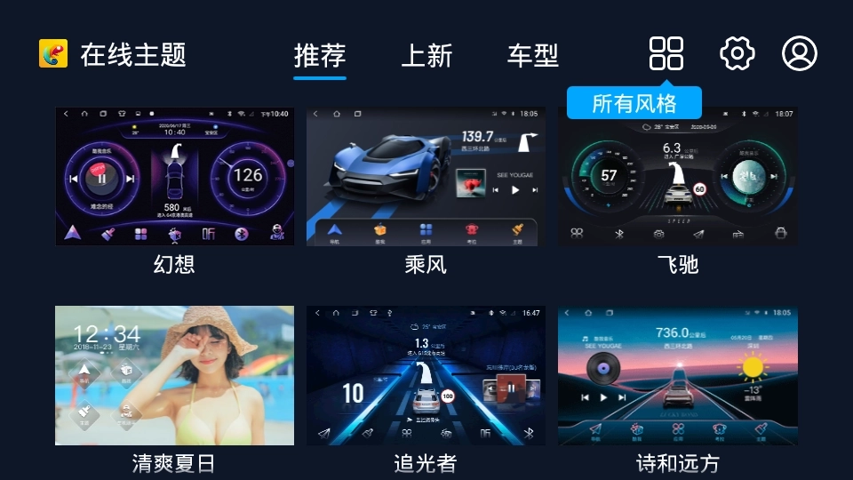 让您的汽车导航界面告别传统单一的样式,变得更独特、更吸引人——您可以随心挑选多种风格的主题来装点它。