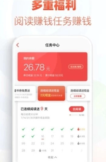 每天阅读各类小说,就能轻松赚点零花钱,读得越多,能拿到的收益就越高。