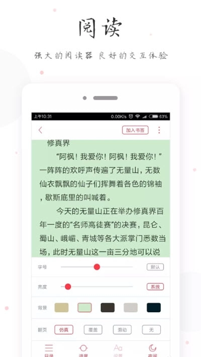 针对阅读,可自由调整阅读体验,文字大小和背景都能自定义。