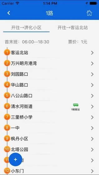2、数据精准:输入公交线路OR公交站点名称,准确告知您欲乘坐的任一公交车当前位置、发车时间以及到站信息。