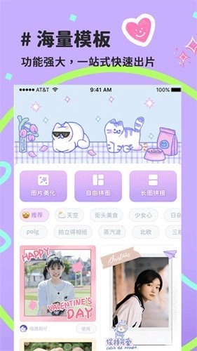 1)拥有独家可爱的贴纸,可以自由的装饰照片,非常受女孩子们的喜爱。