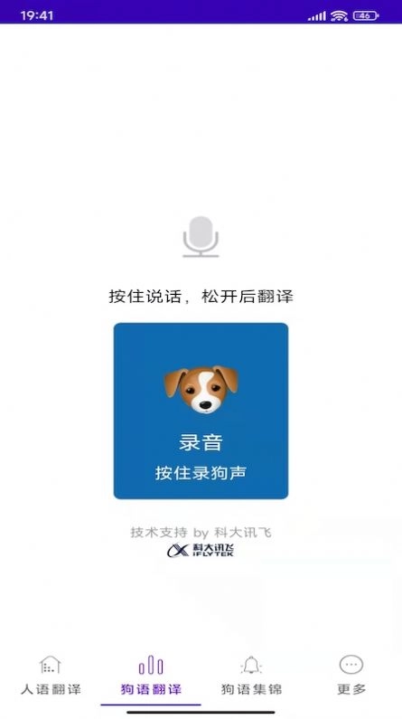 2、最有趣的功能当属狗狗语言翻译器功能了,您可以使用该功能随机录下一段语音。