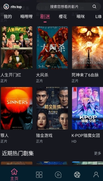 1、安装并打开软件,在首页顶部搜索栏输入剧名,点击搜索按钮获取结果